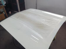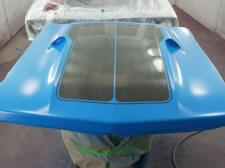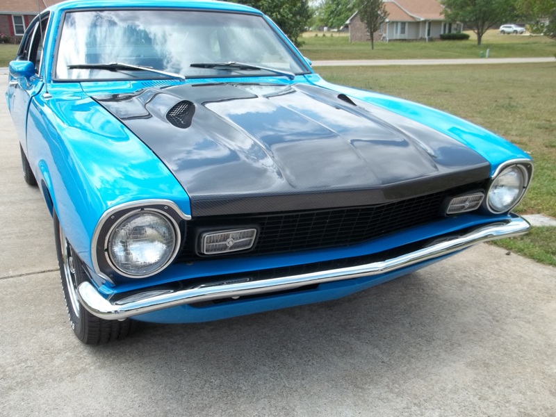 I have a Maverick Man carbon fiber hood and I always feel like it needed a little body color to break up all the black, particularly with a black grille. I had a couple of ideals on paint schemes. First ideal was painting the hood body color and let the carbon fiber be the Grabber stripe. The second ideal was to show off more carbon fiber and go with more of a ’69 Mach I paint scheme. My third idea was to ask total strangers on the internet what would they do if they were me. Not many really liked my 2nd idea.