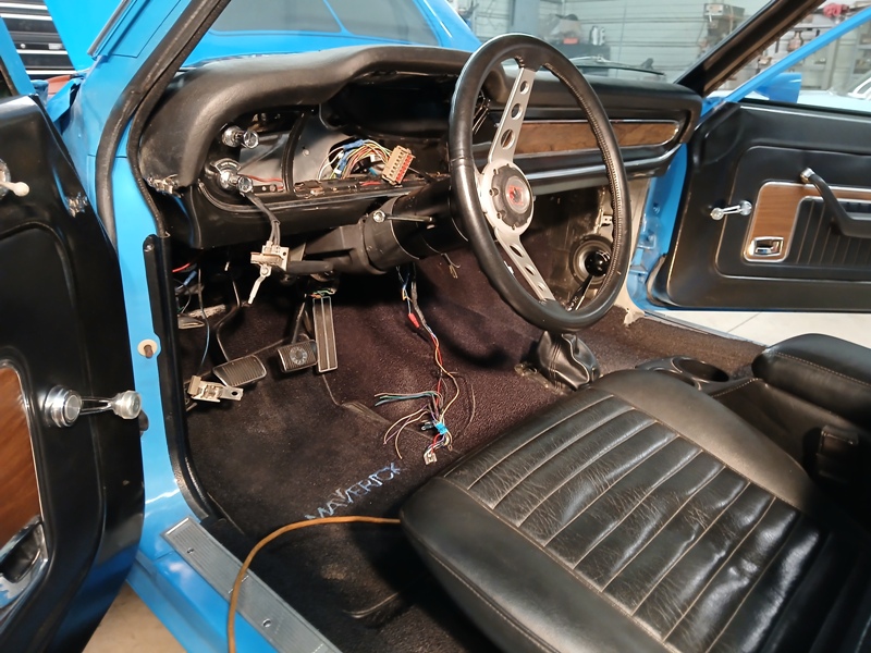 The metal firewall cover plate that came in the kit suppose to mount under the hood but it won't fit a Maverick without major surgery. The plate was mounted on the interior side instead.