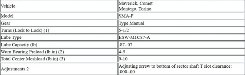 Manual Steering Gear Torque Limits (lb-ft)