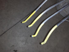 I know a guy who has been in the upholstery business for 35 or 40 years to come to my house to install the headliner and windlace. Before I gave him a call I bead blasted and painted the bows and tack strips. I just happen to have a pack of paint pens laying on the work bench so just for fun I add the correct color code on the support rod ends. Maybe this will freak the next person out years down the road when the headliner gets changed if the car is still around and restorable.