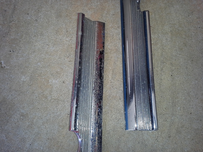 The dash chrome trim was pitted very bad and I replaced them with the trim I already had that wasn't pitted as bad. While I was at it I replaced the headlight switch to get the dash lights working again. A reproduction door/data tag was bought from Marti Auto Works to replace the scratched original.