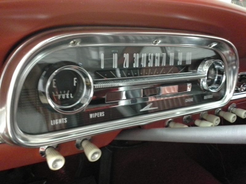 The new cluster lens I purchased from PG Classic Restoration Parts has made a huge difference in the appearance of the interior along with the new steering wheel and horn ring. A new shift collar was bought to replace the worn out collar and painted Rangoon Red along with the shift lever, steering wheel and column.