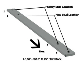 The two outer adapter plates will get the 1-1/4 in. flat head bolts, the two inner adapter plates gets 2-1/2 in. bolts so they be long enough to pass through the factory pedestal spacer. These bolts go in the 2nd Hole and are weld in place then grind the weld smooth. The reason is because there's no way to get a tool on the bolt head once installed. These bolts will go through the rear holes in the floor pan.