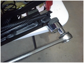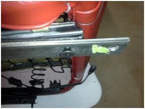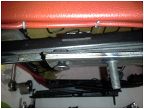 Remove the studs from the seat tracks with a stud extractor or vise-grips. Notice the stud has fine threads going through the floor pan and course thread going through the seat track. Chase the threads in the seat tacks with a 5/16"-18 tap to clean up the threads. Two 5/16 in.-18 x 3/4 in. flat head bolts will attach the adapter to each seat track.