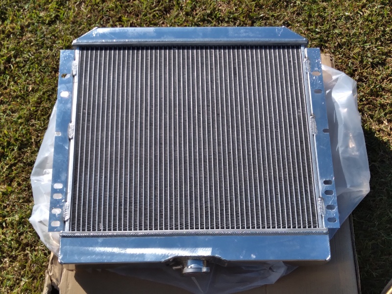 170/200 6 cylinder radiator. Radiator was installed but never seen liquid. Slight damage from water pump. New mounting holes drilled.