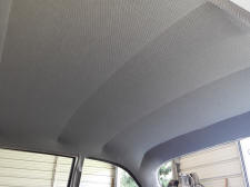 The grey colored cloth windlace was ordered off the internet along with cloth headliner. My interior guy had to re- sew the pockets in the headliner to get a better/snugger fit around the bows.