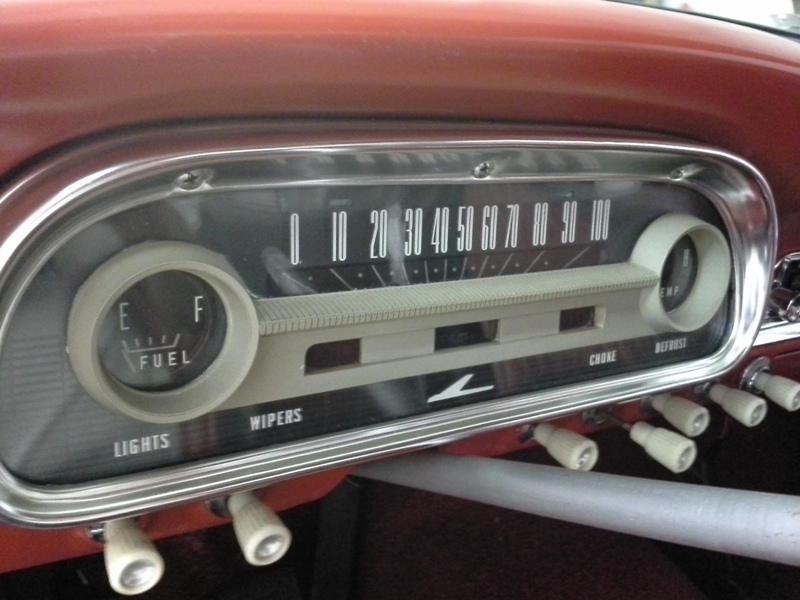 The new cluster lens I purchased from PG Classic Restoration Parts has made a huge difference in the appearance of the interior along with the new steering wheel and horn ring. A new shift collar was bought to replace the worn out collar and painted Rangoon Red along with the shift lever, steering wheel and column.