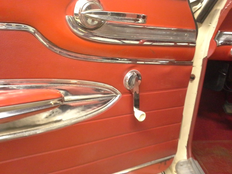 The top trim was the only thing holding the door panel to the door along with a sheet metal screw in the lower corner. I was lucky the lower chrome trim did cover the screw hole. The chrome aftermarket window cranks were replaced with the correct Falcon parts. Since the '63 turn signal stalk is different than the 60- 62 and not reproduced I found a NOS stalk to replaced the chrome aftermarket lever.