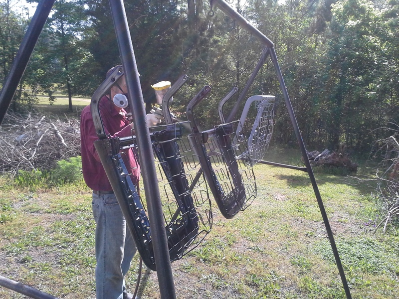 The original bucket seat were replace by the previous owner with seats from a 66 Fairlane. I got a very good deal on some '64 Falcon bucket seats on craigslist. I stripped the seats to the frame and sand blasted the frame and springs. The tracks were bead blasted and painted along with the seat frames. New foam buns was bought on eBay and burlap with the reinforcement wire was purchases from Romeo Engineering.