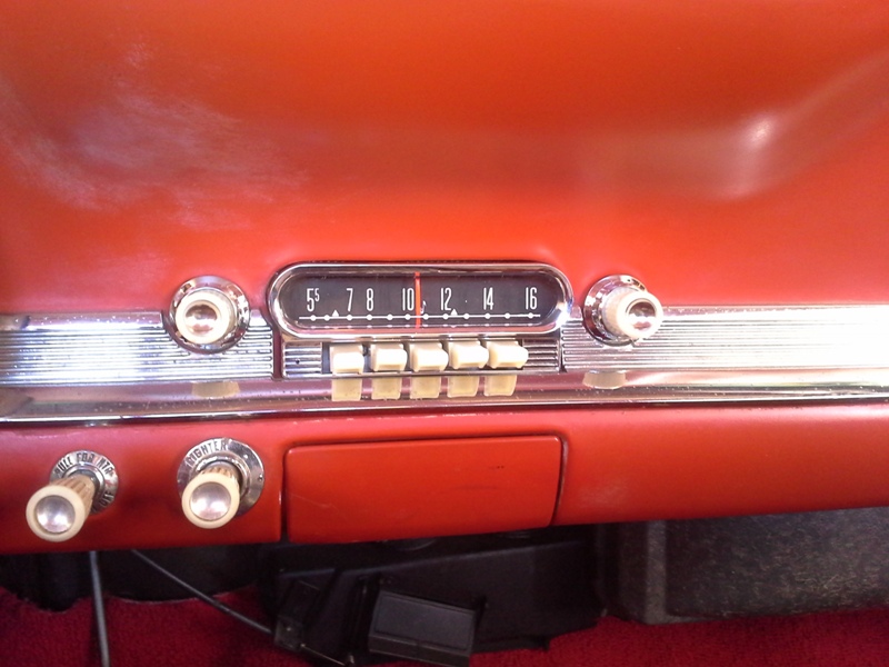 To look more period correct a new reproduction radio with AM/FM/Bluetooth from Antique Automobile Radio Inc. replaced the Custom Autosound unit the previous owner installed. A dual voice cone 5x7 dash speaker from Retro Sound filled the missing hole in the dash.