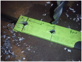 - 2nd Hole is 2 in. from 1st hole, countersink the top of this hole