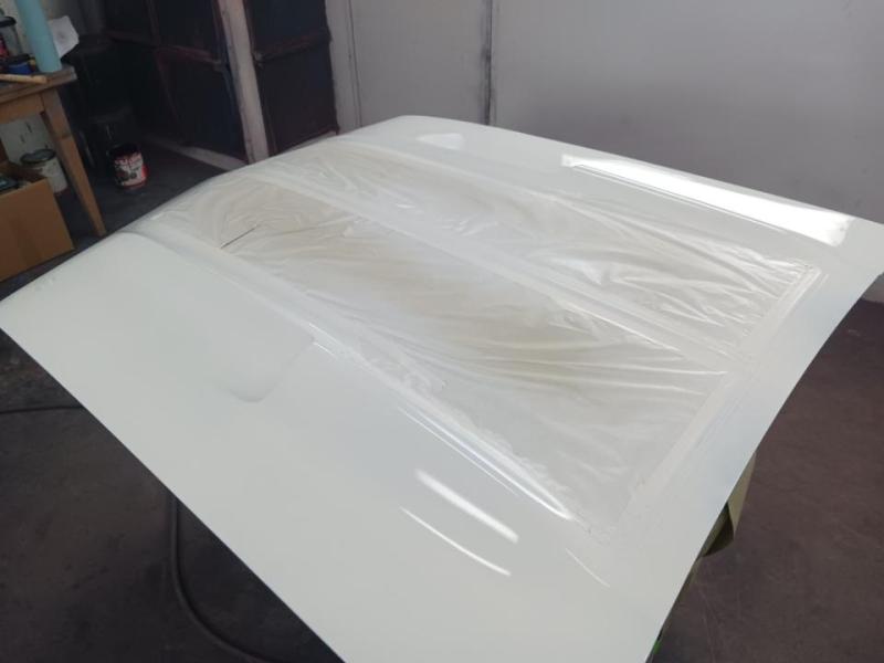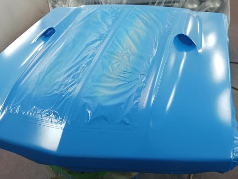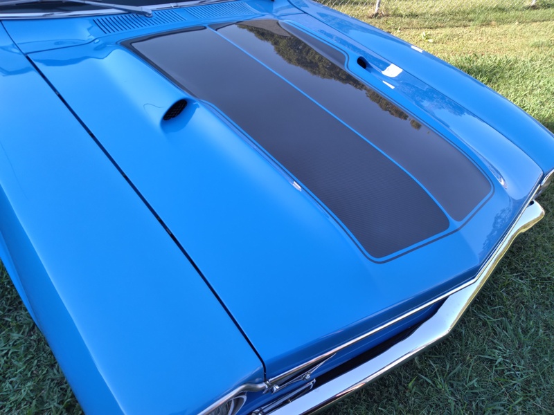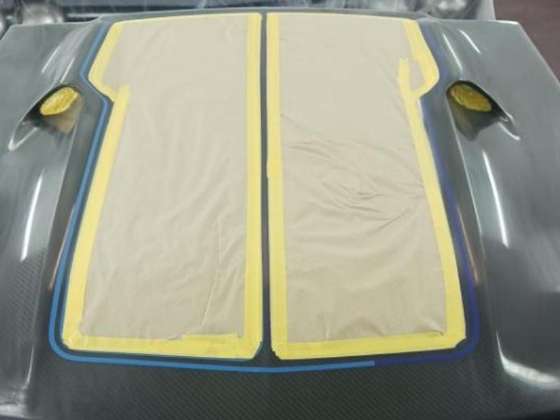 I have a Maverick Man carbon fiber hood and I always feel like it needed a little body color to break up all the black, particularly with a black grille. I had a couple of ideals on paint schemes. First ideal was painting the hood body color and let the carbon fiber be the Grabber stripe. The second ideal was to show off more carbon fiber and go with more of a ’69 Mach I paint scheme. My third idea was to ask total strangers on the internet what would they do if they were me. Not many really liked my 2nd idea.