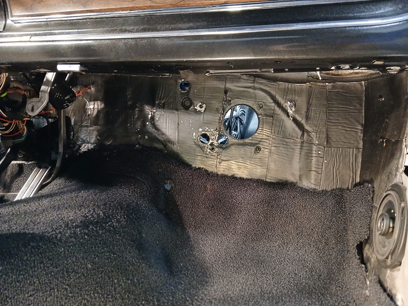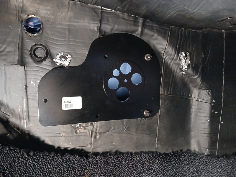 The metal firewall cover plate that came in the kit suppose to mount under the hood but it won't fit a Maverick without major surgery. The plate was mounted on the interior side instead.