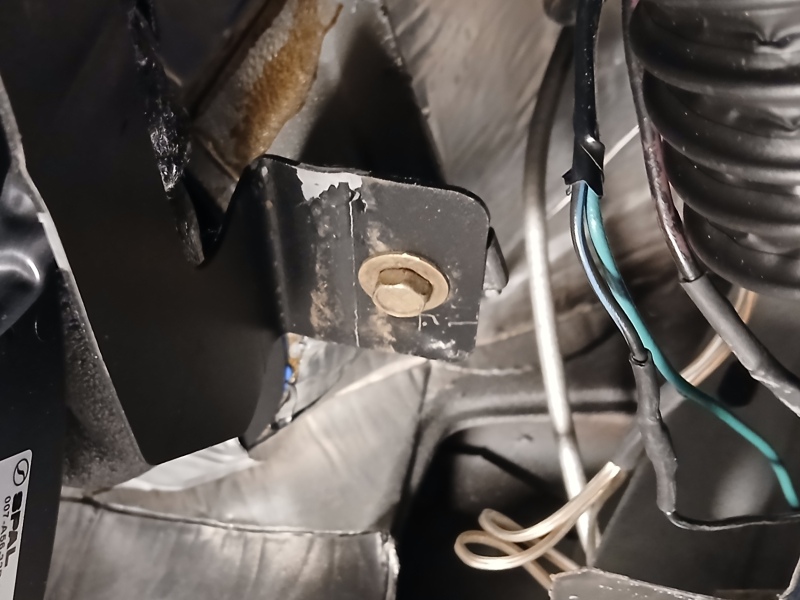 The flange on the left side of the Mustang dash bracket was cut off for defrost nozzle clearance. The Maverick doesn't use this bracket so why have it? The right side flange now has a 90* bend instead of two 45*. This aligned the Mustang bracket to the factory support bracket and U-nut perfect.