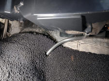 The drain hose is 1-piece instead of 5-pieces that is used on the Mustang. This will allow using the factory hole in the floor and also tucks the hose next to firewall giving the passenger more feet room.