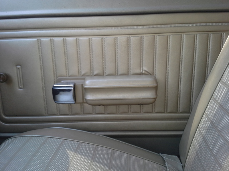 The interior door handle changed location from the armrest to the lower corner in mid '73.