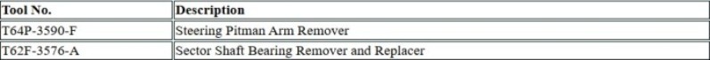 - Remove the nut and lock washer that secures the Pitman arm to the sector shaft. Using Tool T64P-3590-F (Fig. 5), remove the Pitman arm from the sector shaft. Do not hammer on the end of the puller as this can damage the steering gear.