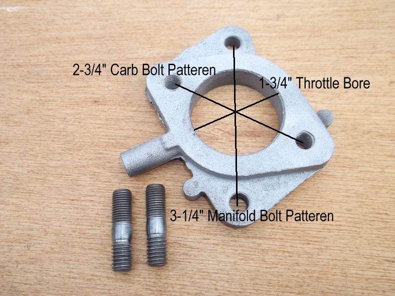 Intake studs are 3.25" apart and carburetor studs are 2.5" apart 1-5/8" bore. D0DE part number